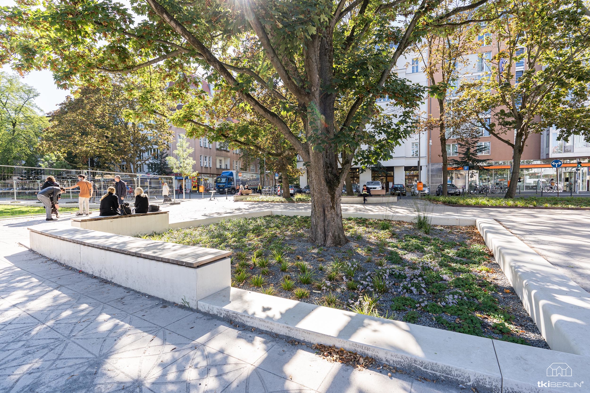 Der Olivaer Platz, welcher vis-a-vis zum Haus wurde jüngst neu gestaltet und erstrahlt nun als ein vollkommen neuer, attraktiver Park vor der Tür auf Sie und Ihre Kundschaft.