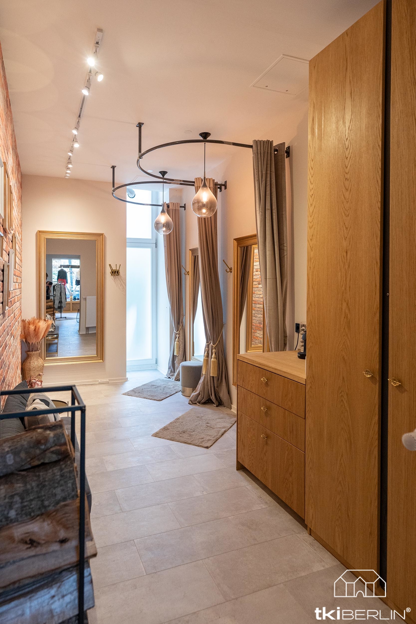 Auch das Badezimmer wurde mit hochwertigen Materialien und großformatigen Fliesen ausgestattet. Ein Wasseranschluss im hinteren Raum bietet die Möglichkeit hier eine kleine Teeküche einzubauen. Eine Teilübernahme des Inventars des Laden gegen eine geringe Abstandszahlung könnte vereinbart werden.