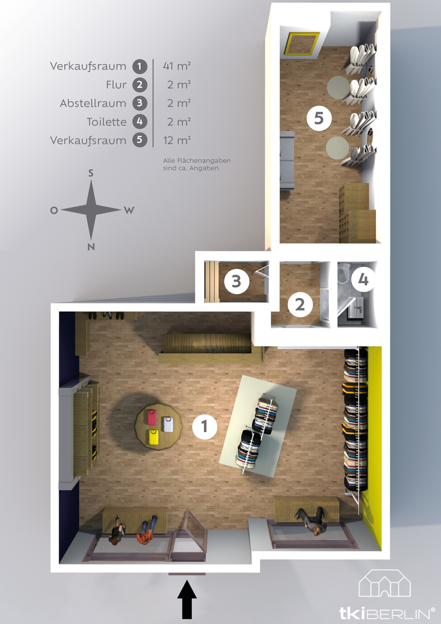 Der vordere Bereich verfügt über eine nahezu vollständig verglaste Straßenfront. Über den hinteren Raum gelangen Sie auch auf den Innenhof des Hauses, welcher mitgenutzt werden kann. In der Mitte der Fläche befindet sich das WC.