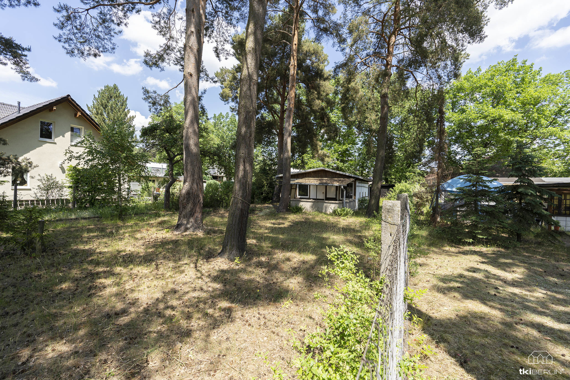 Aktuell ist das als Bauland ausgewiesene Flurstück ca. 768 m² groß und kann, nach dem Abriss der Gartenlauben und der Beräumung des Grundstückes, direkt bebaut werden. Die Schuppen können noch zum Teil für die Bauphase genutzt werden, sollten dann aber abgerissen werden. Einer der Schuppen, die alte Garage, besteht hierbei aus Eternit-Wänden und einem Eternit-Dach.
