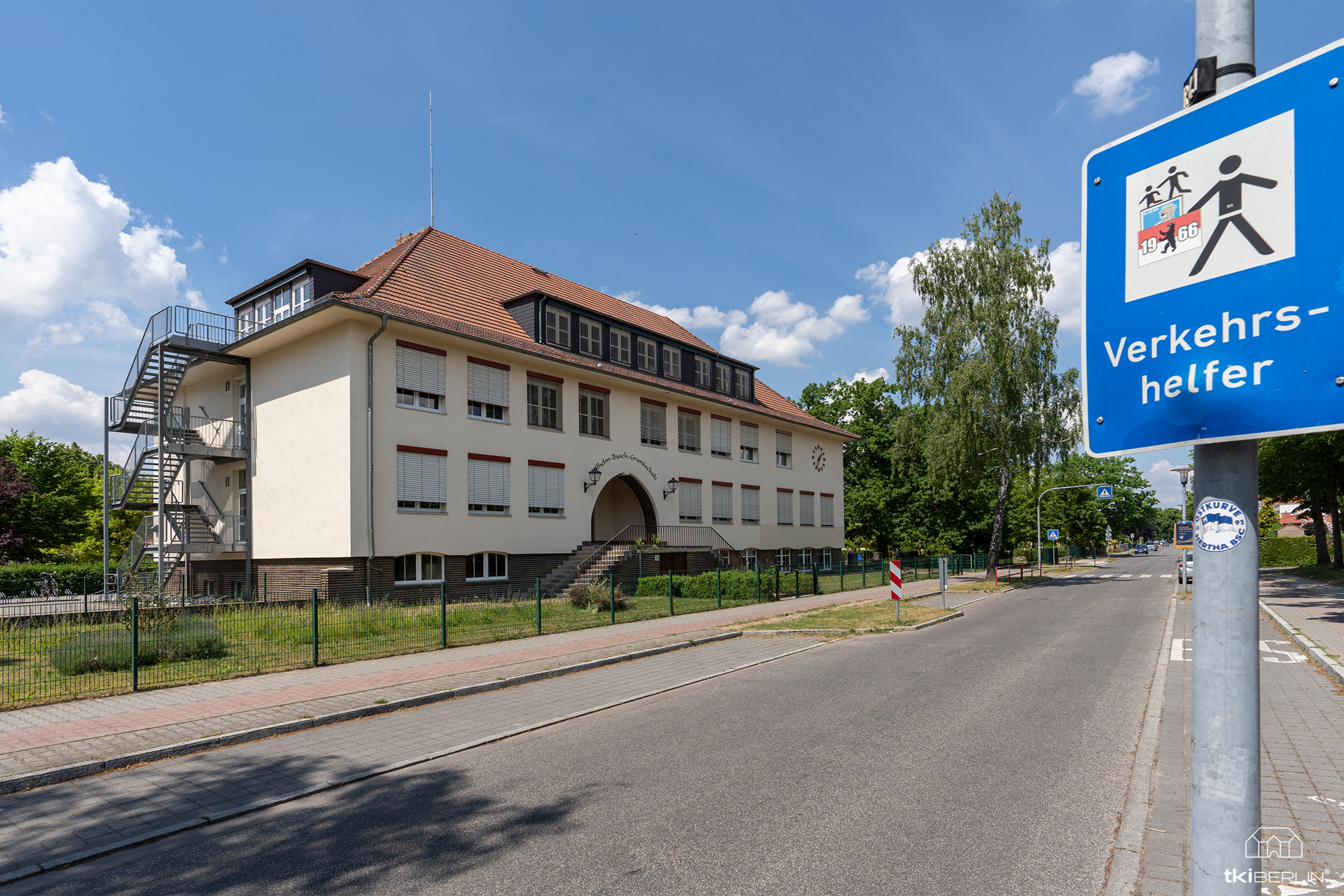 Das im Ortsteil Blankenfelde liegende Grundstück befindet sich in einem Wohngebiet, welches durch gepflegte Einfamilienhäuser und Gärten geprägt ist. Unmittelbar hinter dem Grundstück liegt das Kopernikus-Gymnasium sowie die Wilhelm-Busch-Grundschule und ein Hort.